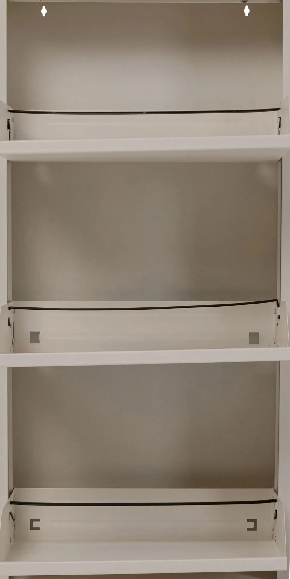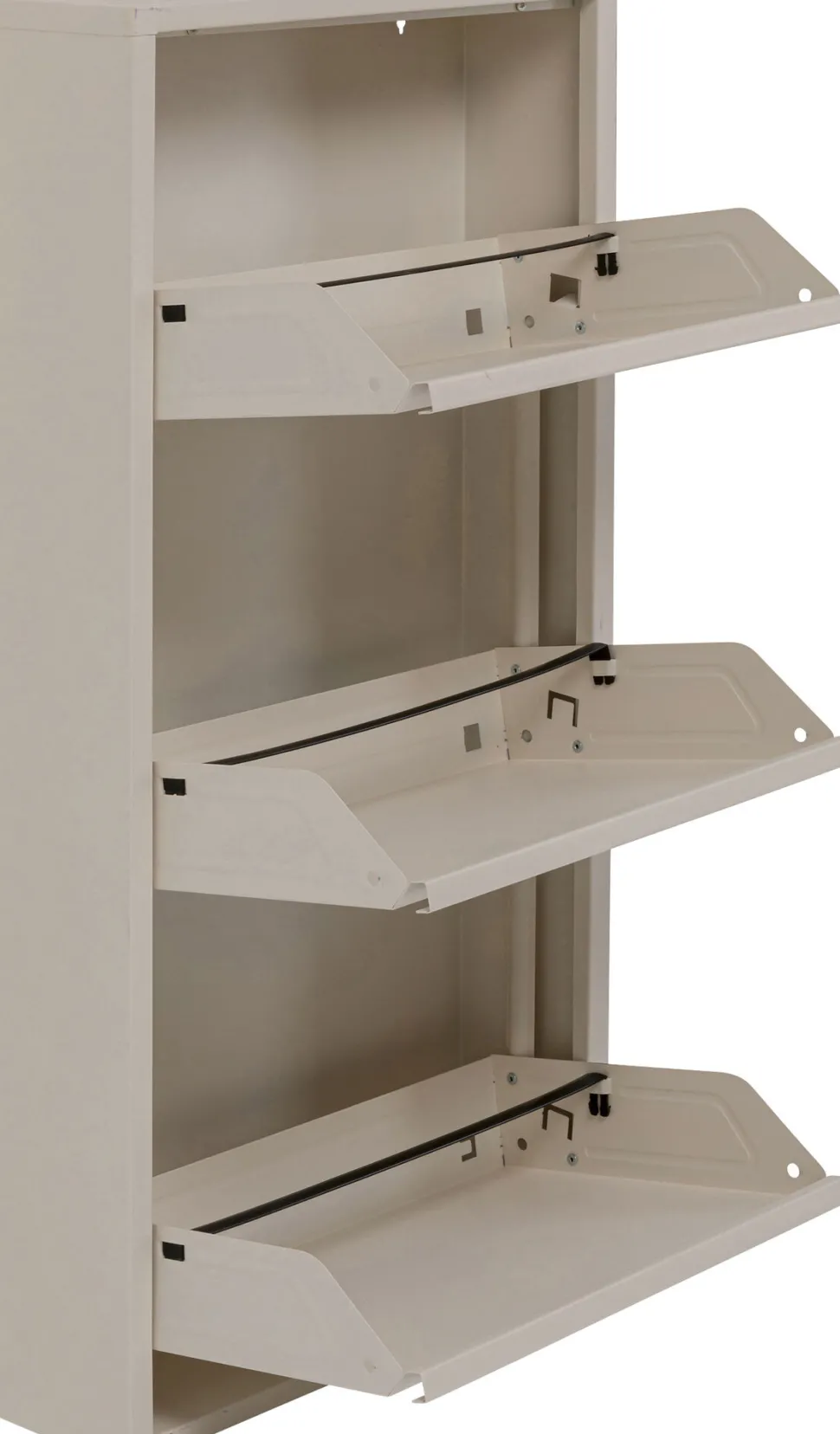 - Praktischer, creme farbener Schuhschrank mit drei Kippfächern