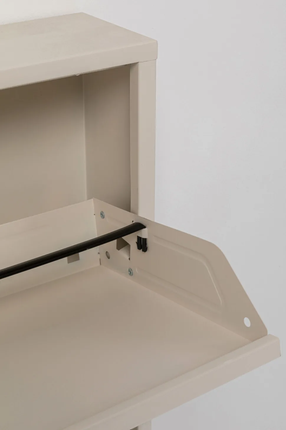 - Dank glatter Fronten und geringer Tiefe macht sich der Schuhkipper nahezu unsichtbar
