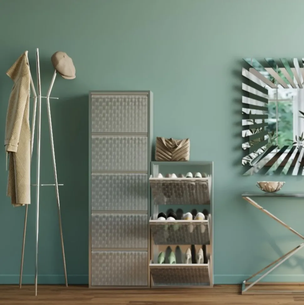 - Smarter Stauraum! Hoher und besonders flacher Schuhschrank mit fünf praktischen Kippfächern