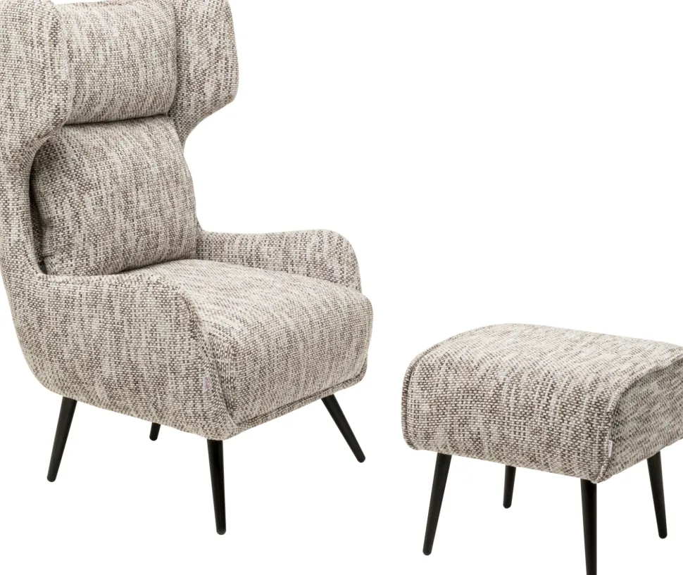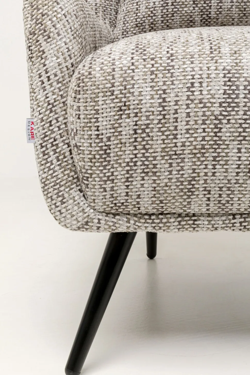- Die großzügige Formgebung und der strukturierte Bezug in warmen Grau-Nuancen verleihen einen modernen Retro-Touch