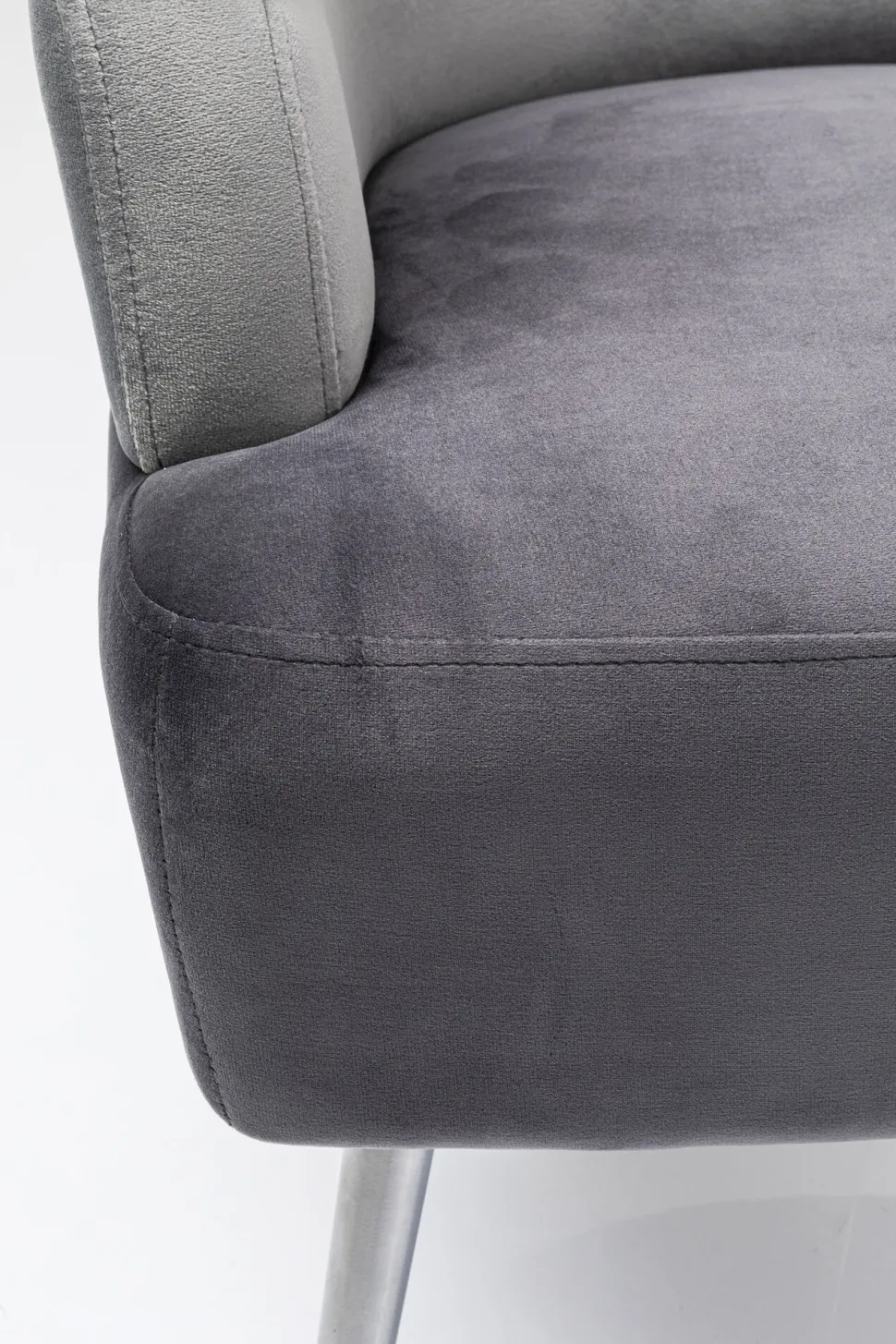 - Voll gepolsterter, kleiner Cocktailsessel in grauer Samtoptik mit silberfarbenen, leicht ausgestellten Beinen