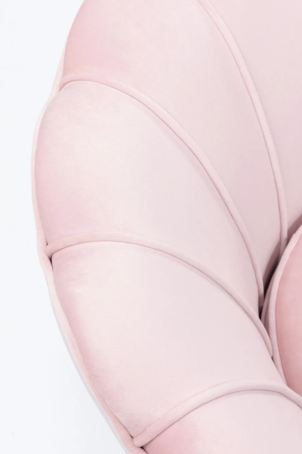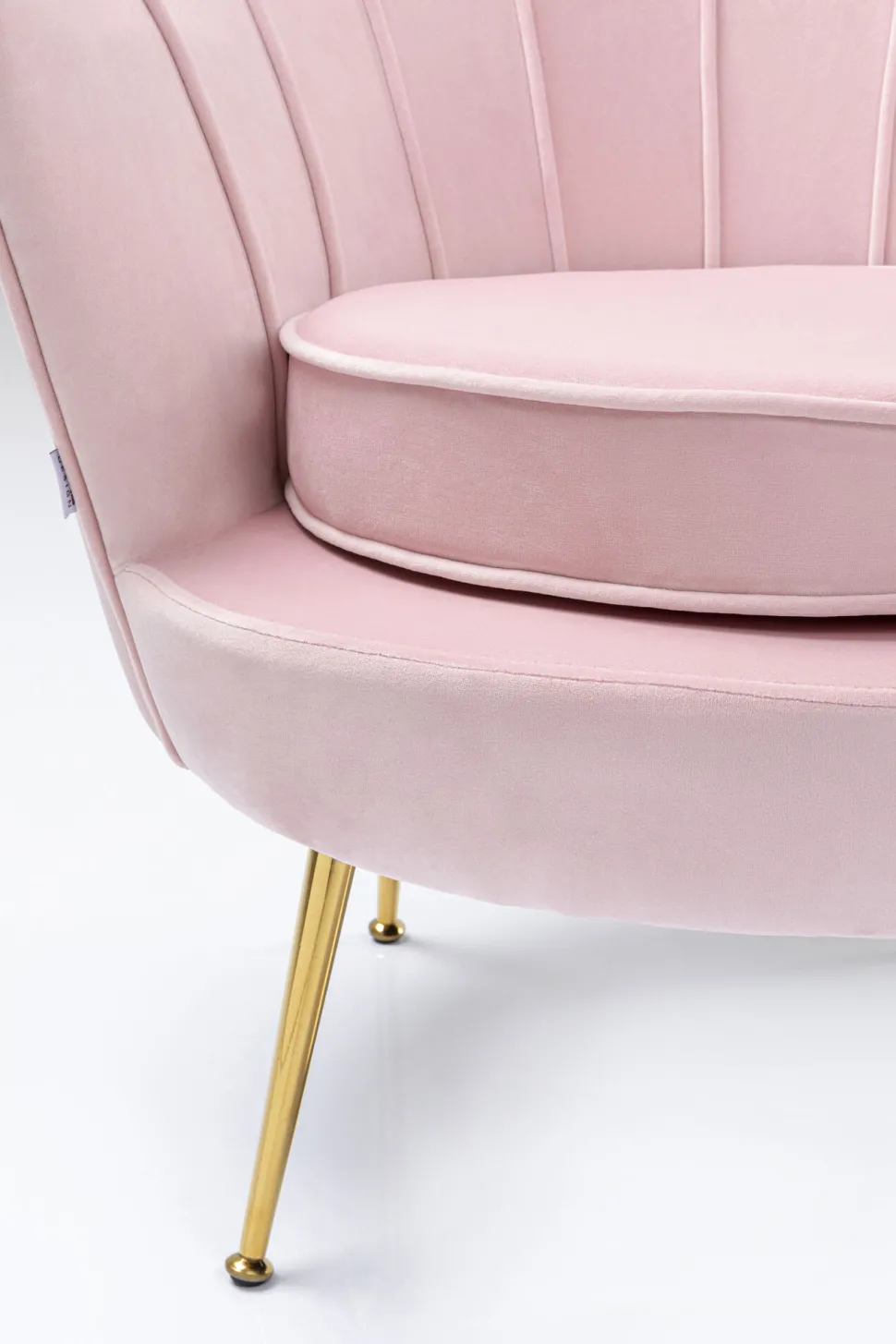 - Flower-Power: In zartem Rosa schimmert dieser samtige Cocktail-Sessel auf messingfarbenen Beinen