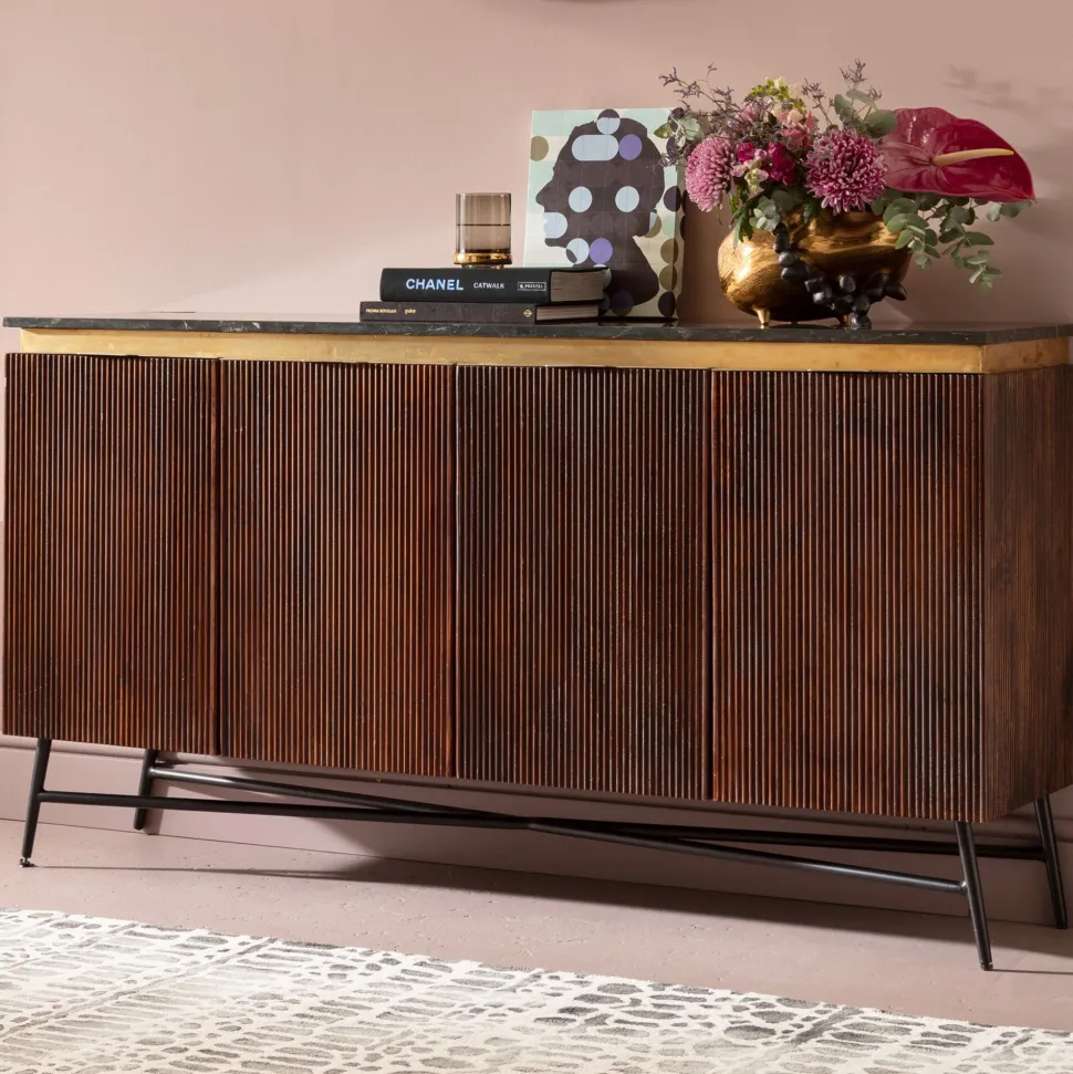 - Originelles Design mit den Fronten in Rillen-Optik und goldfarbenem Sockel unter der Deckplatte