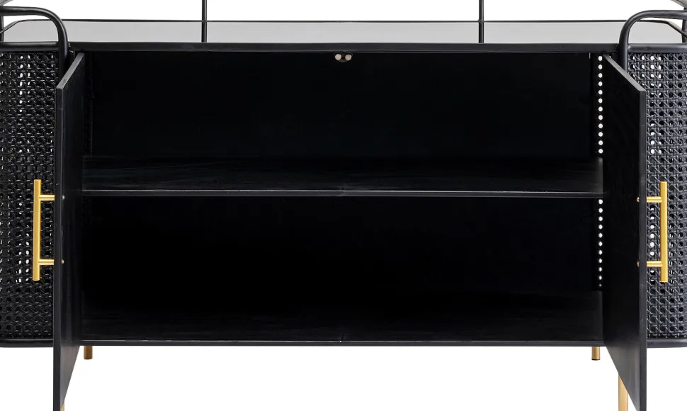 - Durch das Wiener Geflecht aus Metall an den Seiten wirkt das Sideboard wertig und bekommt seinen ganz individuellen Look