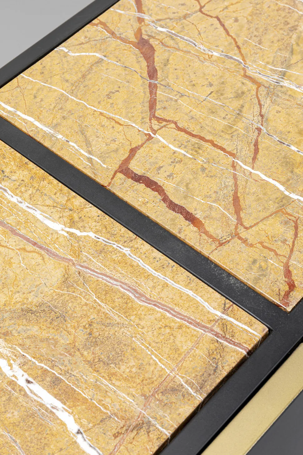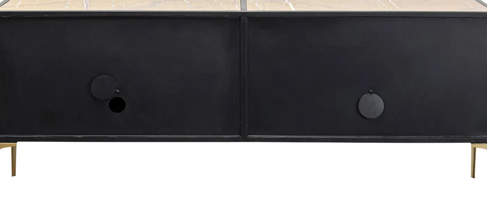 - Designer-Sideboard in Braun-Schwarz-Gold aus Metall mit Marmor-Deckplatte, 75 x 183 x 43 Zentimeter (H/B/T)