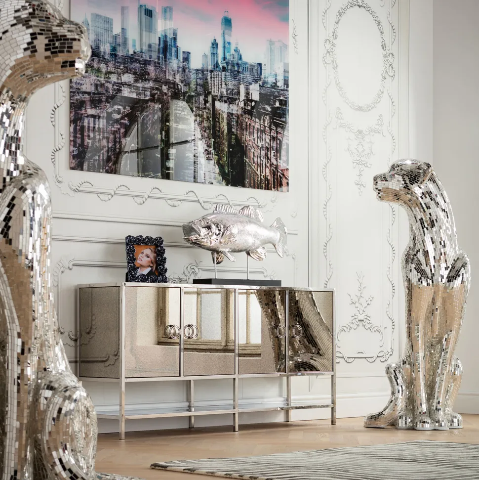 - Das verspiegelte Lowboard zaubert durch die Reflexion von Licht und Umgebung raffinierte Effekte