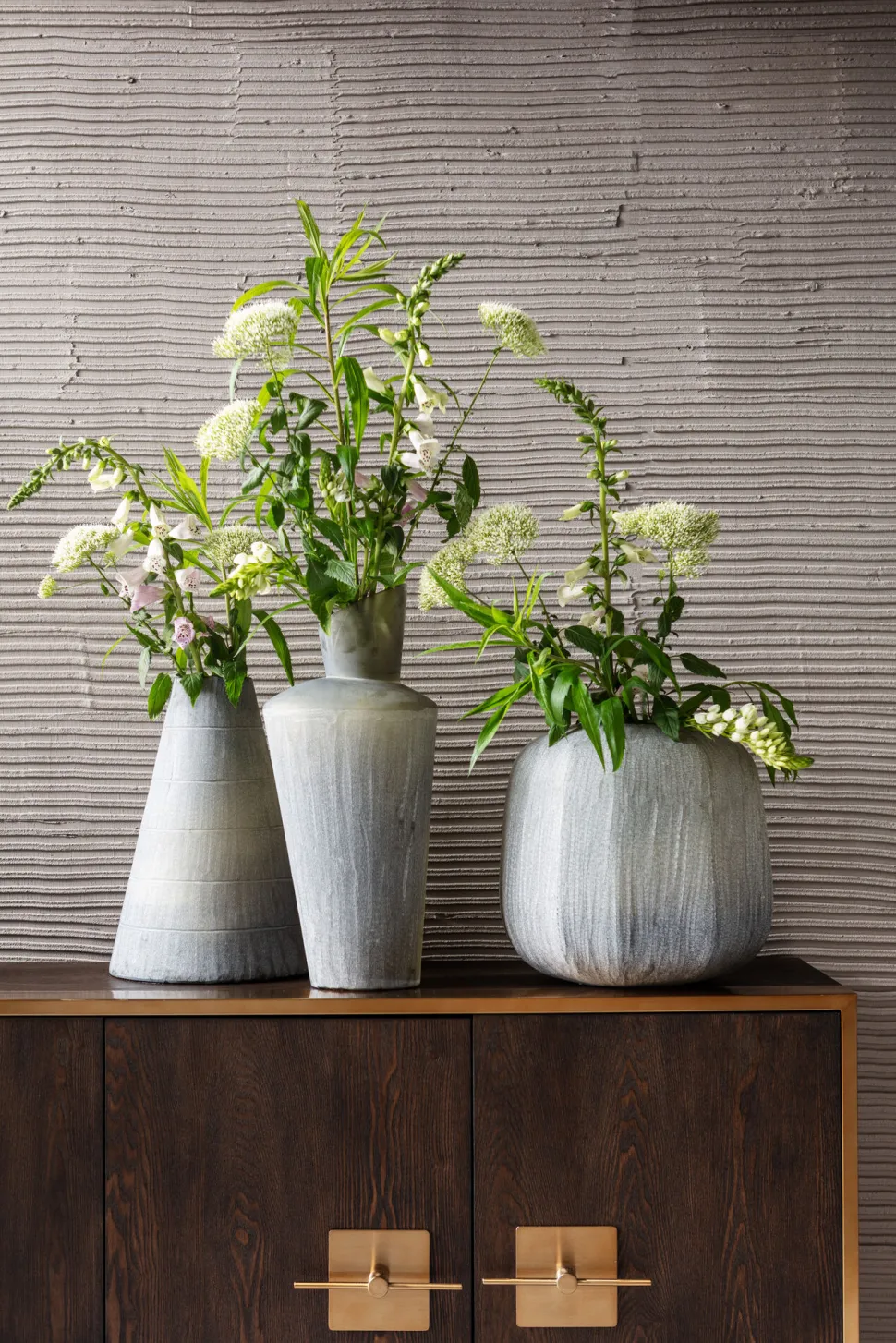 - Der harmonische Mix aus Holz und Metall steht auch vor gemusterten Tapeten gut