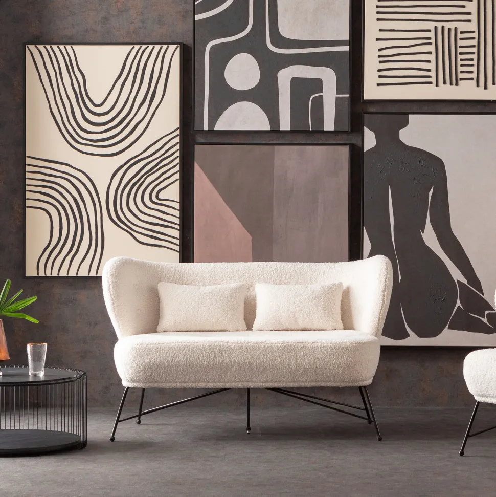 - Stylisch und wahnsinnig gemütlich: der Bouclé-Bezug des Zweier-Sofas