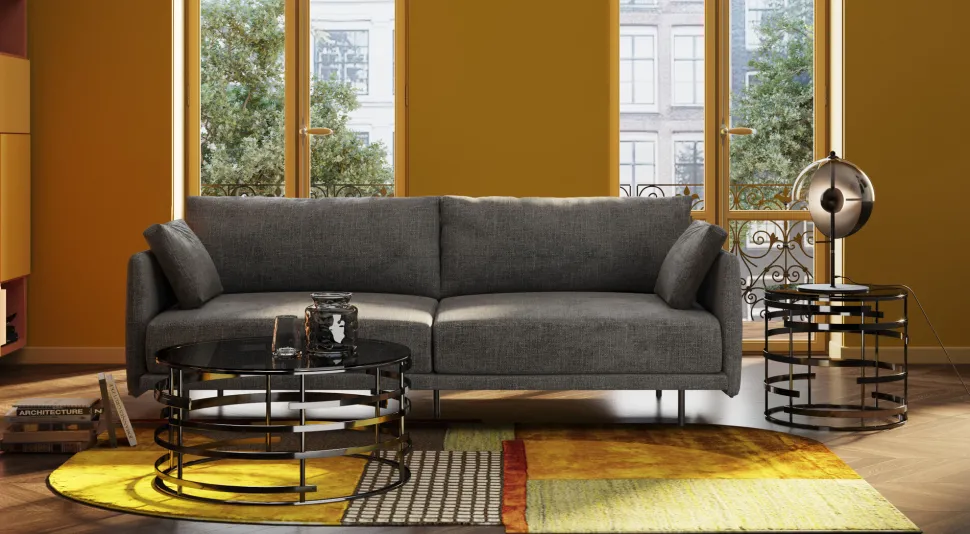- Graues 3-Sitzer-Sofa mit schwarzen Beinen, 245 cm breit