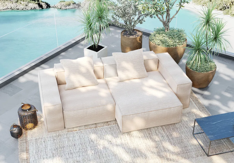 - Klare Linienführung und die natürliche Leinen-Optik strahlen Leichtigkeit aus und verleihen jedem Outdoor-Bereich ein modernes Ambiente