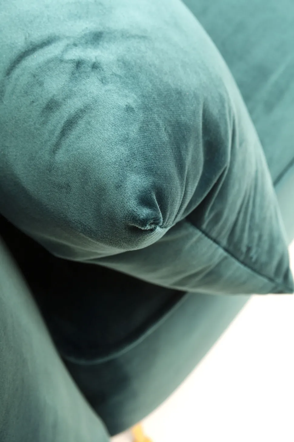 - Elegantes Zweisitzer Sofa im glamourösen Sixties-Look mit schwungvoller Form und samtigem Bezug in edlem Petrol