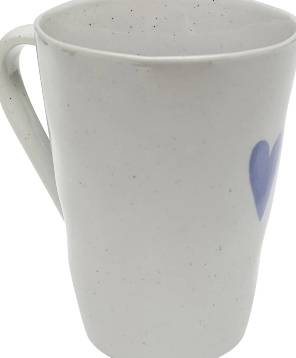 - Weiße Tasse aus Keramik mit blauen Herz-Details, 11.9 x 9.2 x 9.2 Zentimeter (H/B/T)