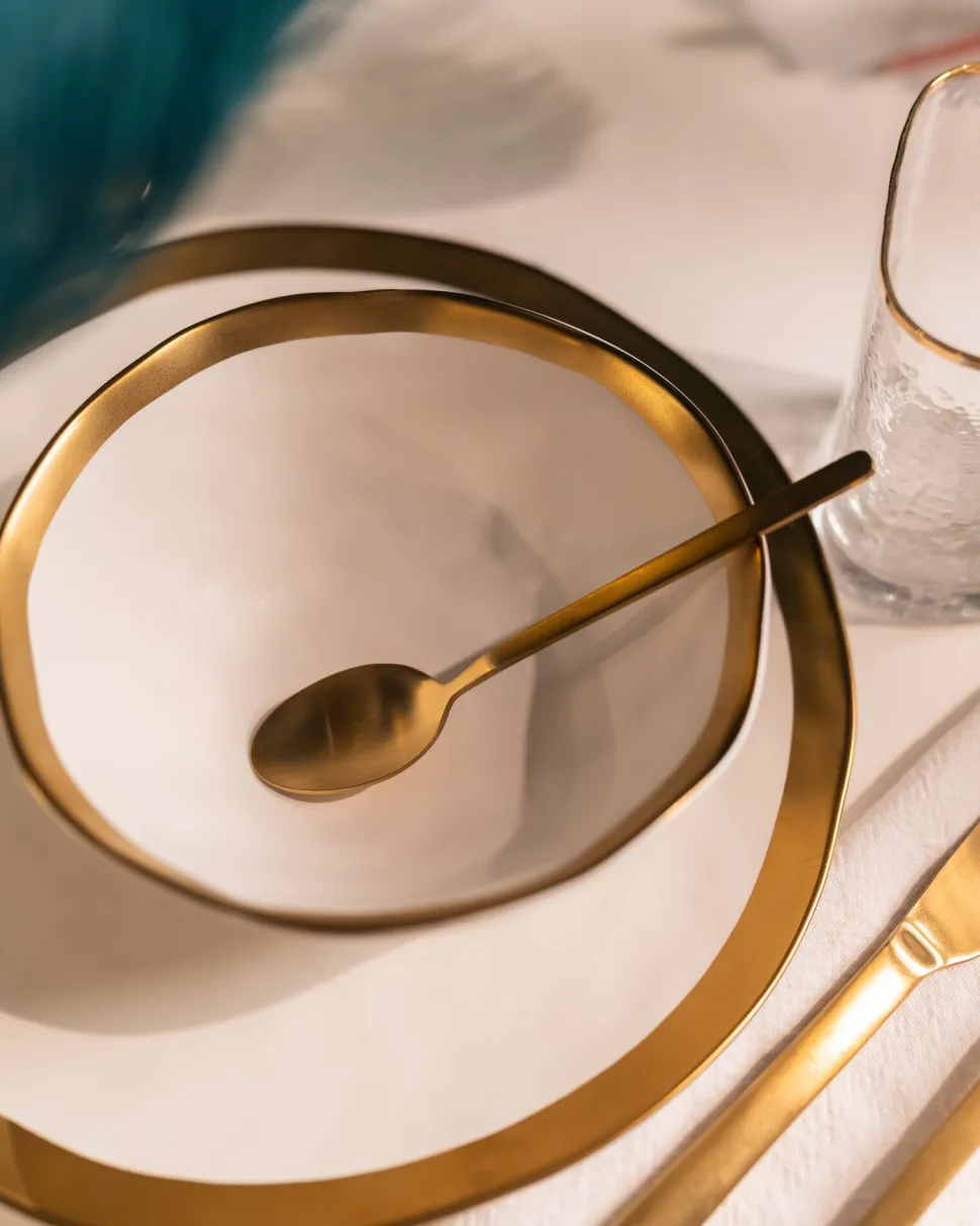 - Diese feine Geschirrserie vereint die typische Formgebung von Keramikstücken mit modernem Glamour