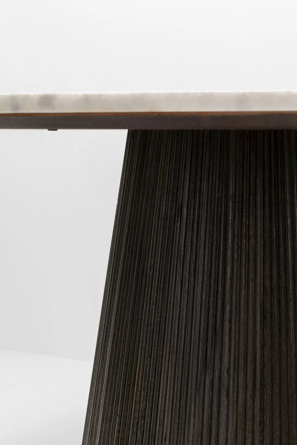 - Runder Esstisch mit Marmorplatte und schwarzem Fuß aus Massivholz, 75 x 115 x 115 Zentimeter (H/B/T)