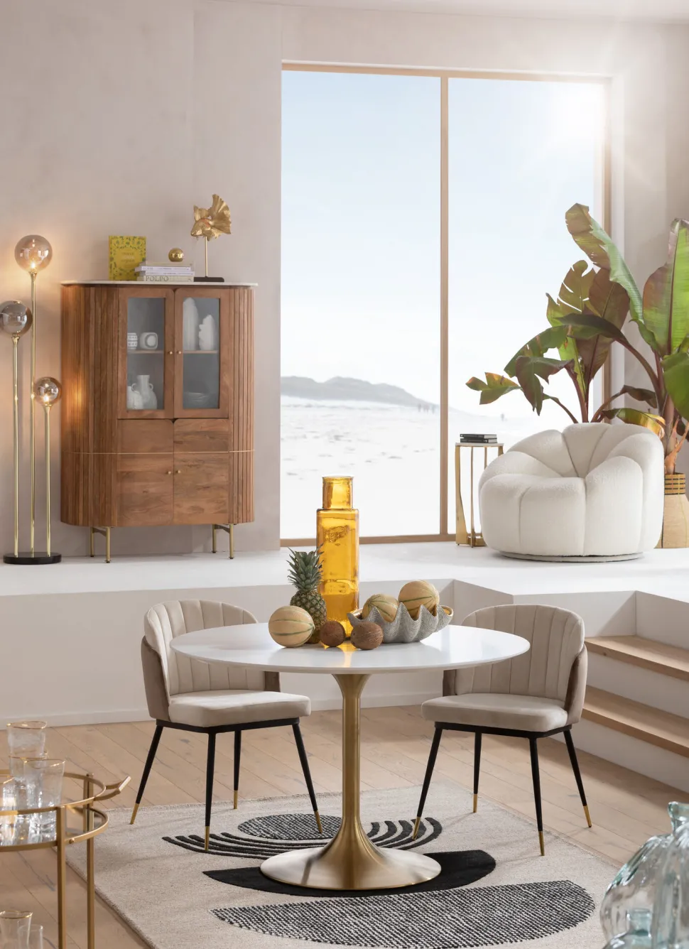 - Esstisch rund weiß: ein Design-Klassiker mit stylischem Tulpenfuß, hier in der Farbe Messing