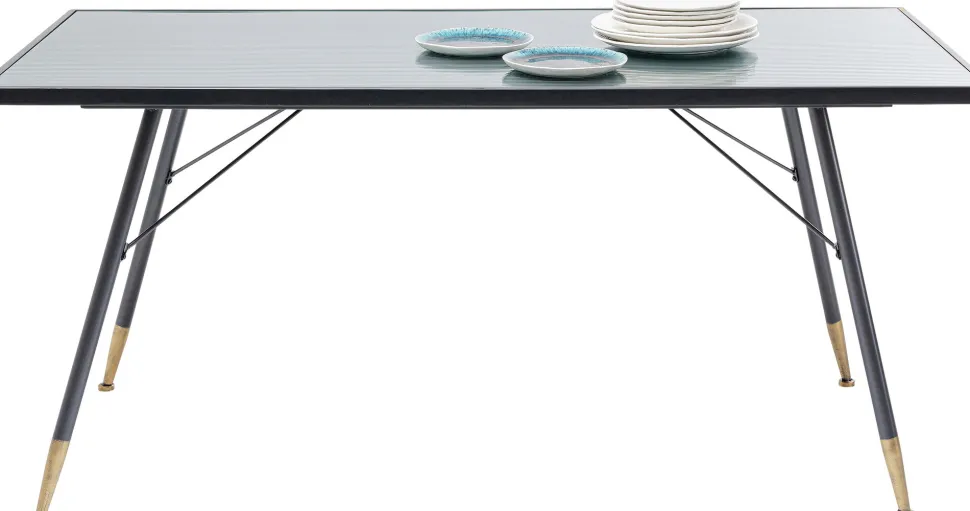 - Vier Personen finden locker Platz am Glastisch mit den Maßen von 160x80cm