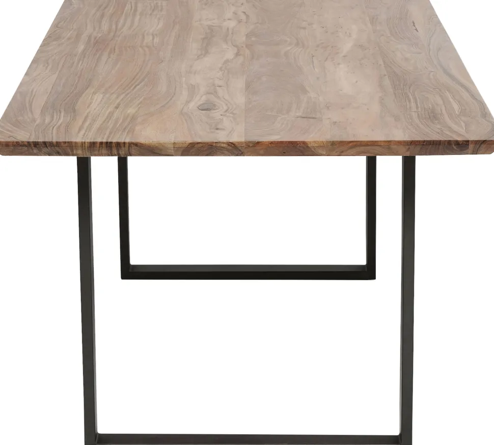 - Moderner, rechteckiger Esszimmertisch aus der Symphony-Serie mit langlebiger Akazien-Massivholzplatte, die auf einem soliden Stahlgestell liegt