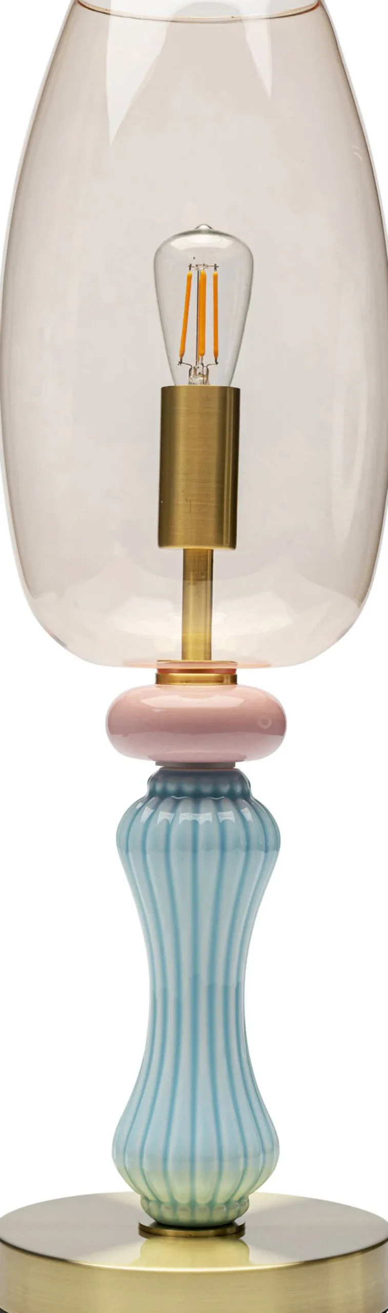 - Diese Lampe besticht durch ihr glänzendes Finish, geschwungene Formsprache und sanfte Pastell-Töne