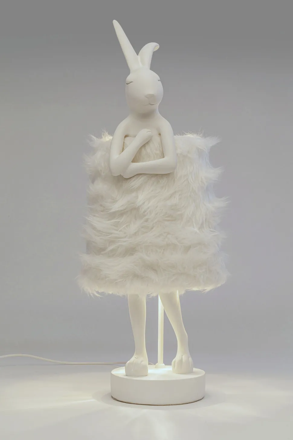 - Diese süße Hasen-Skulptur trägt als Kleid einen Lampenschirm mit plüschigem Kunstfell-Bezug