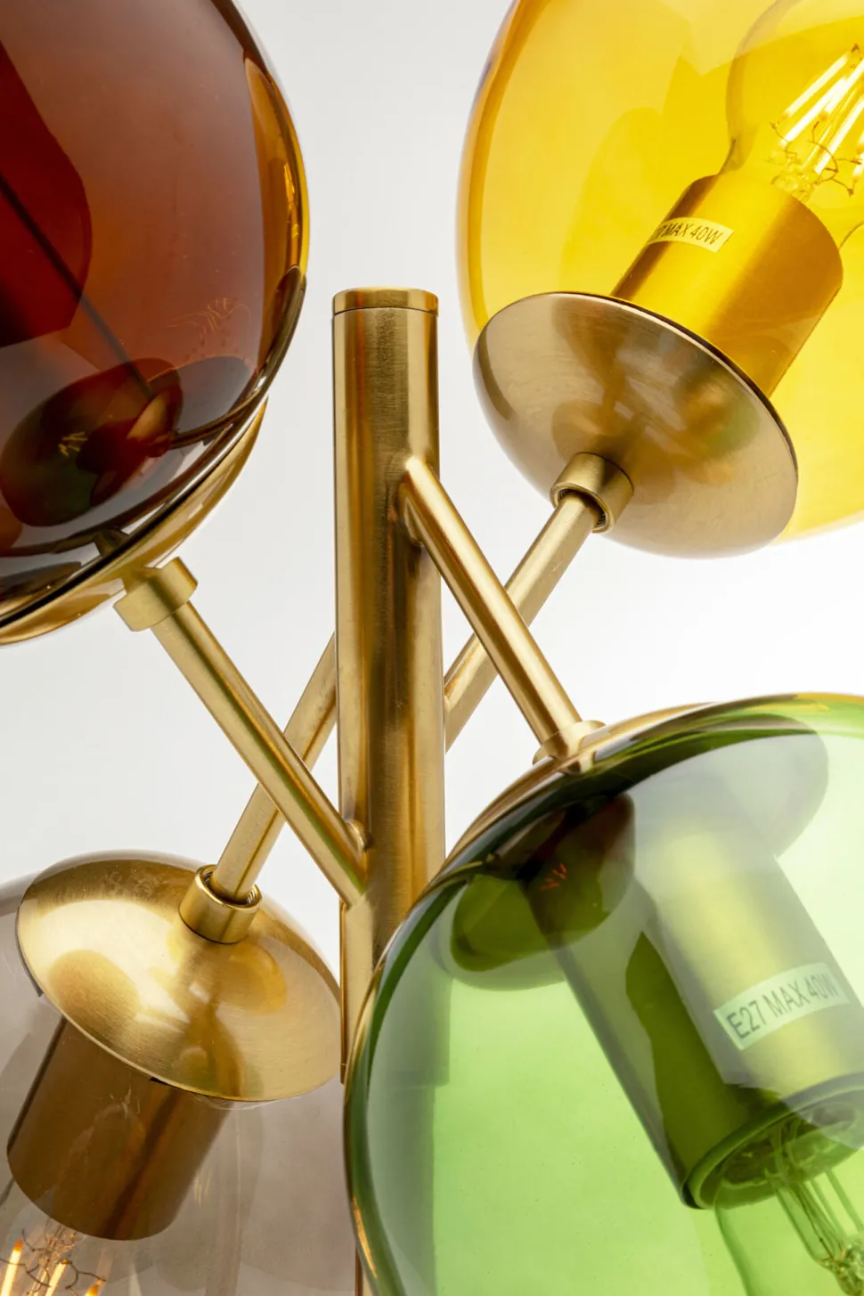 - Die Glasschirme in semitransparentem Braun, Grau, Grün und Gelb schimmern zart dank der Galvanisierung