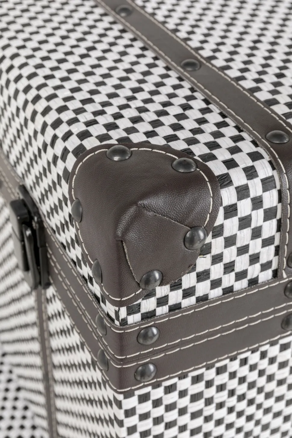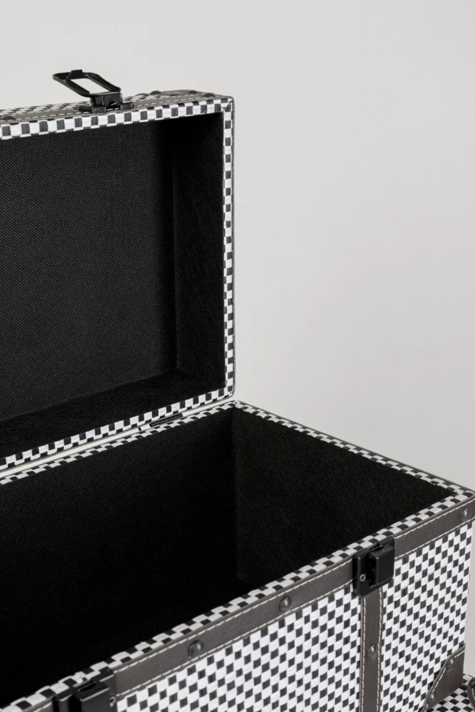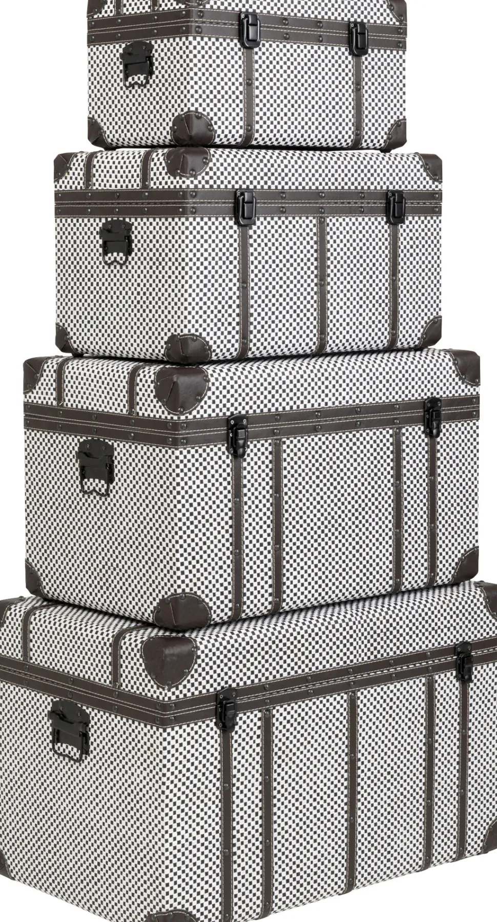- Set aus 4 karierten Truhen mit Klappdeckel in Schwarz-Weiß