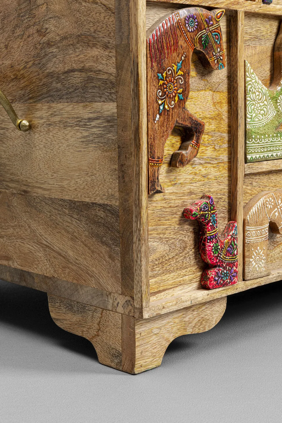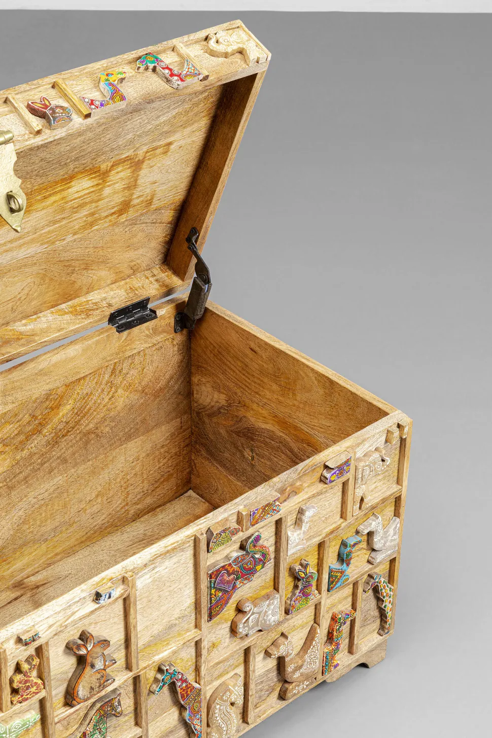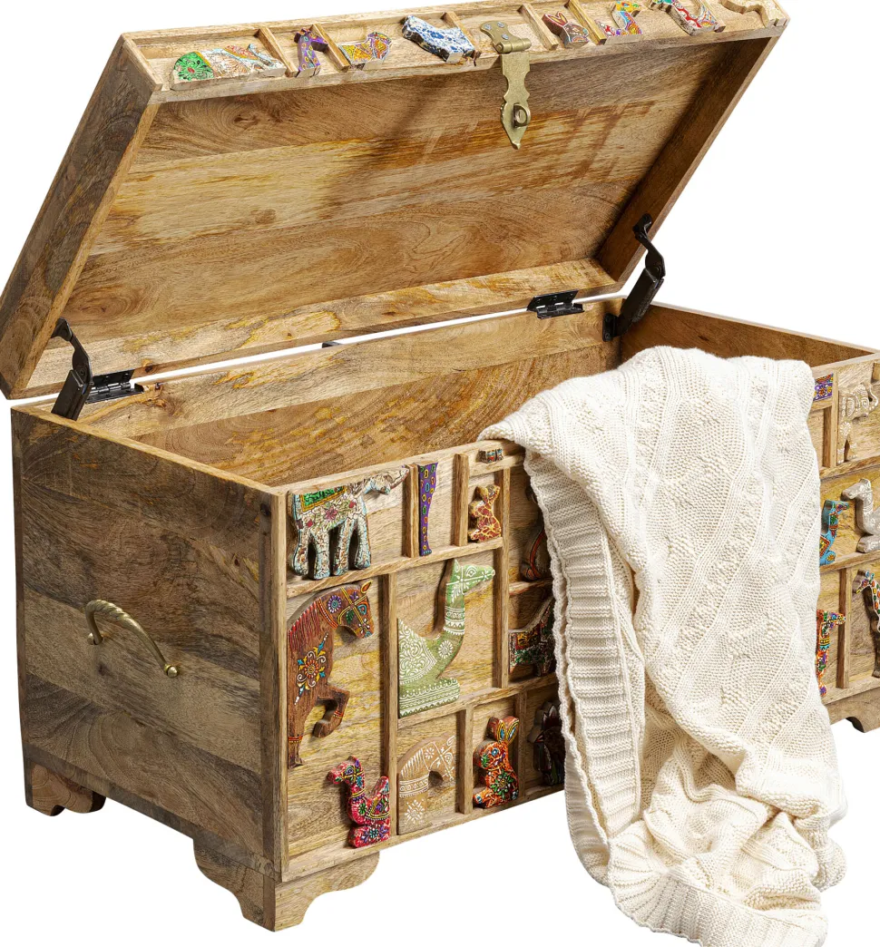 - Hübsche, geschnitzte und farbig bemalte Tiermotive machen diese Truhe zum Lieblingsstück