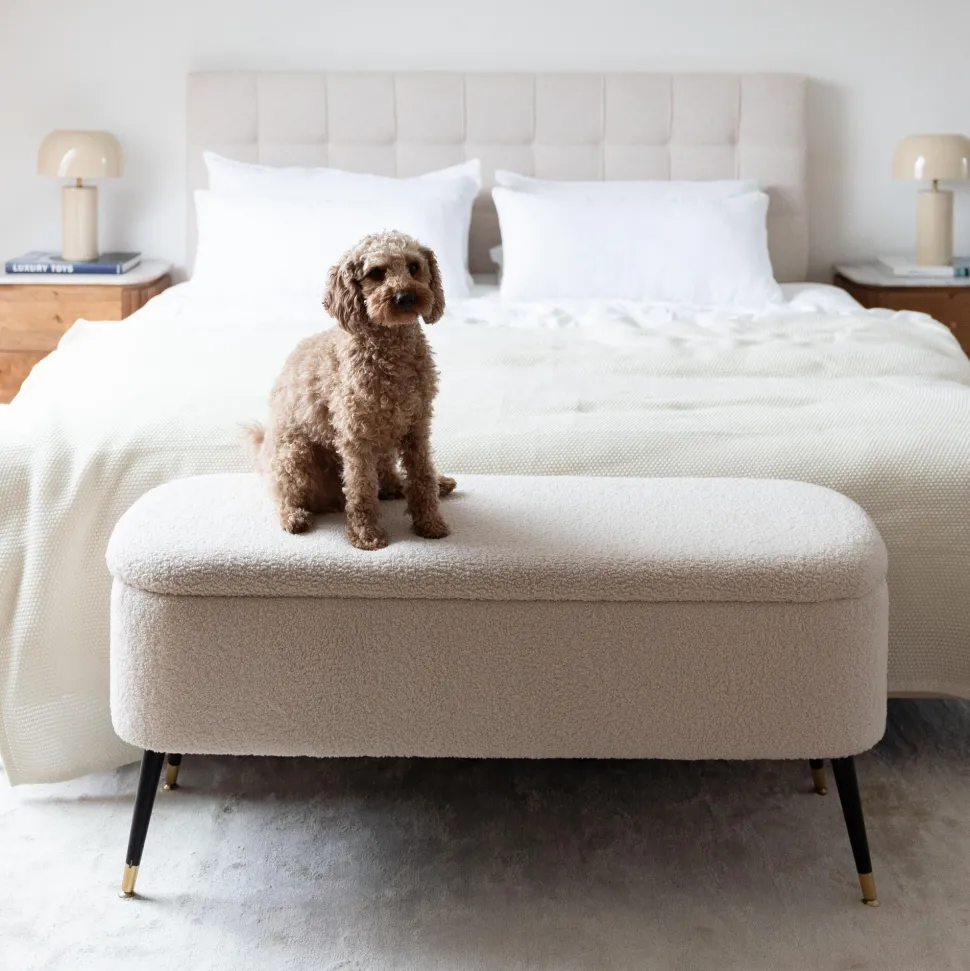 - Aufklappbare Polsterbank mit Bouclé-Bezug in Weiß, 50 x 111 x 41 Zentimeter (H/B/T)