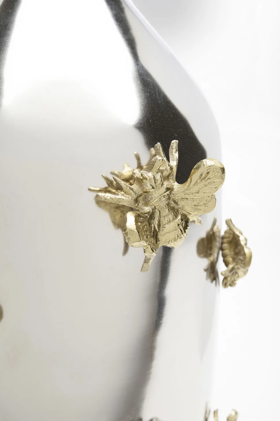- Große Vase in Silber und Gold mit Bienen-Details, 46 x 23 x 23 Zentimeter (H/B/T)