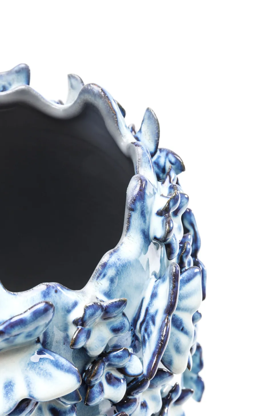 - Traumhafte Deko-Vase in frischem hellblau und Schmetterlingen als hübsche Verzierung