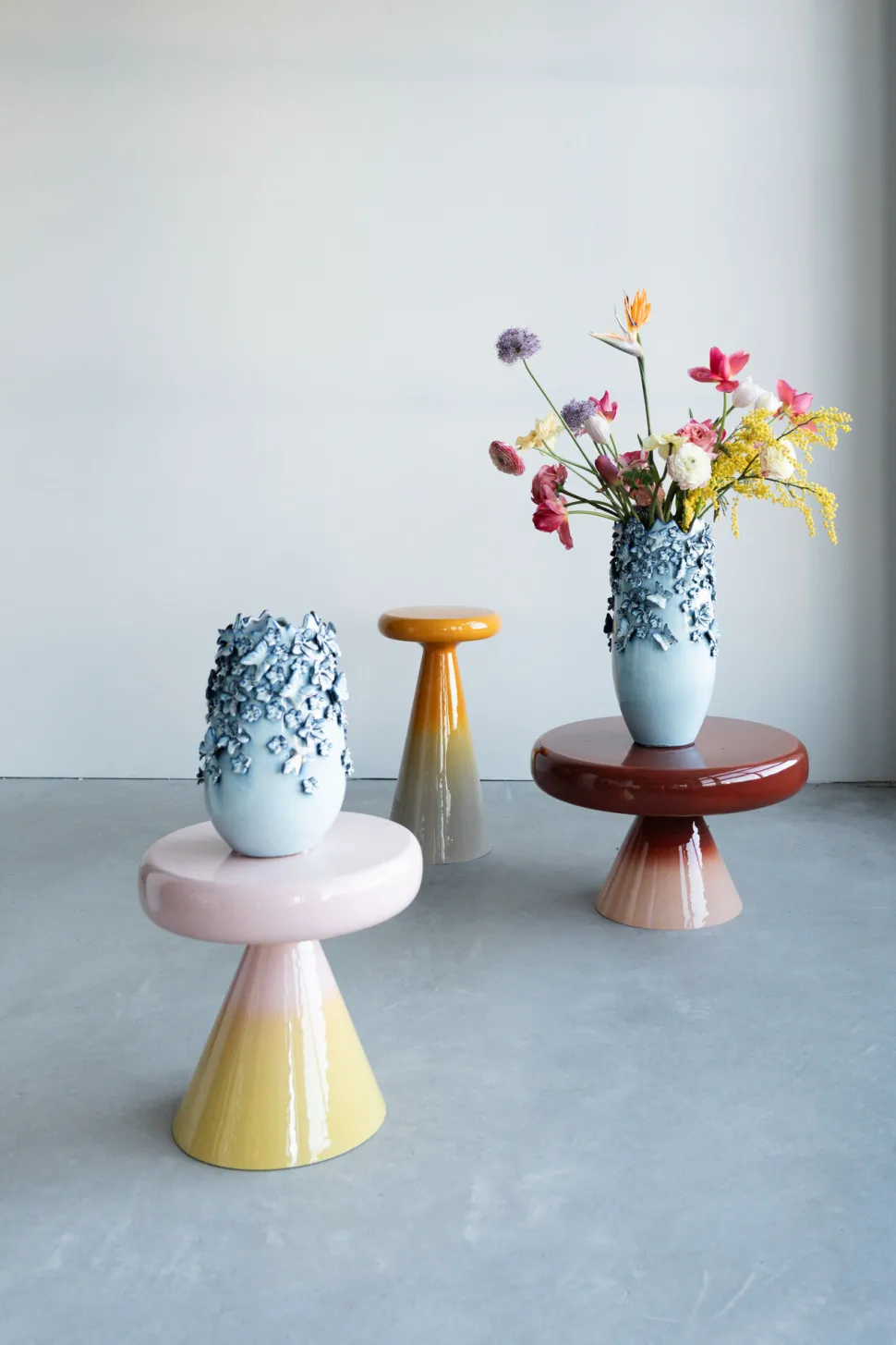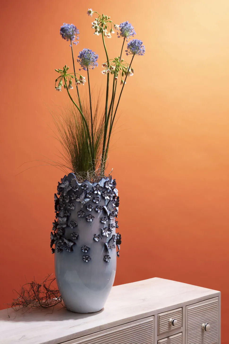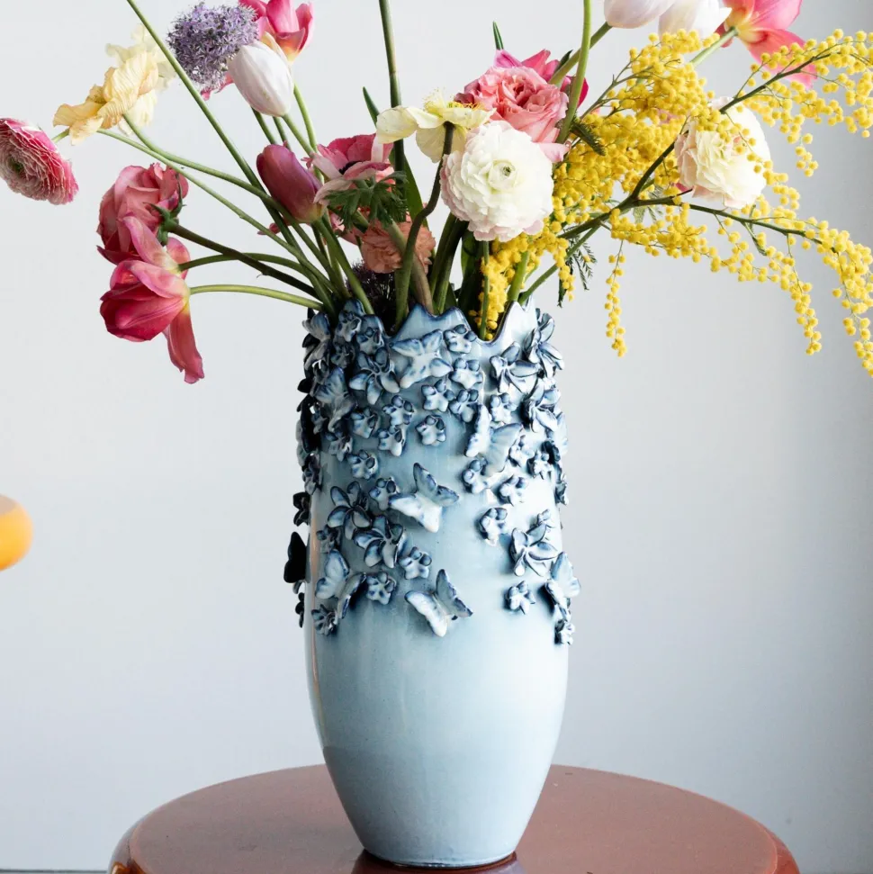 - Traumhafte Deko-Vase in frischem hellblau und Schmetterlingen als hübsche Verzierung