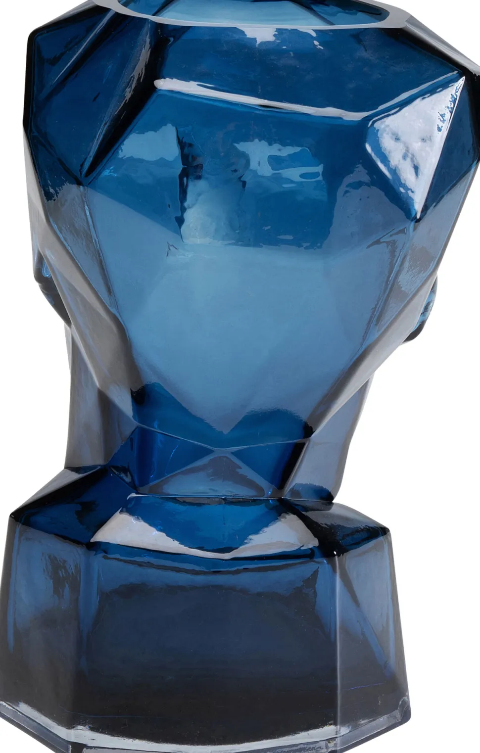 - Die Glas-Vase in Kopfform macht als kunstvolles Deko-Objekt im Regal und auf dem Sideboard Eindruck