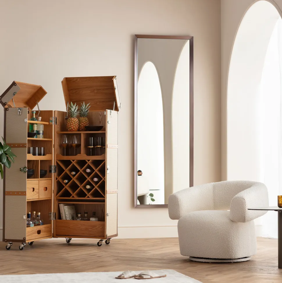 - Der Rahmen des Ganzkörperspiegels in stilvollem Kaffee-Braun besteht aus titanbeschichtetem Stahl