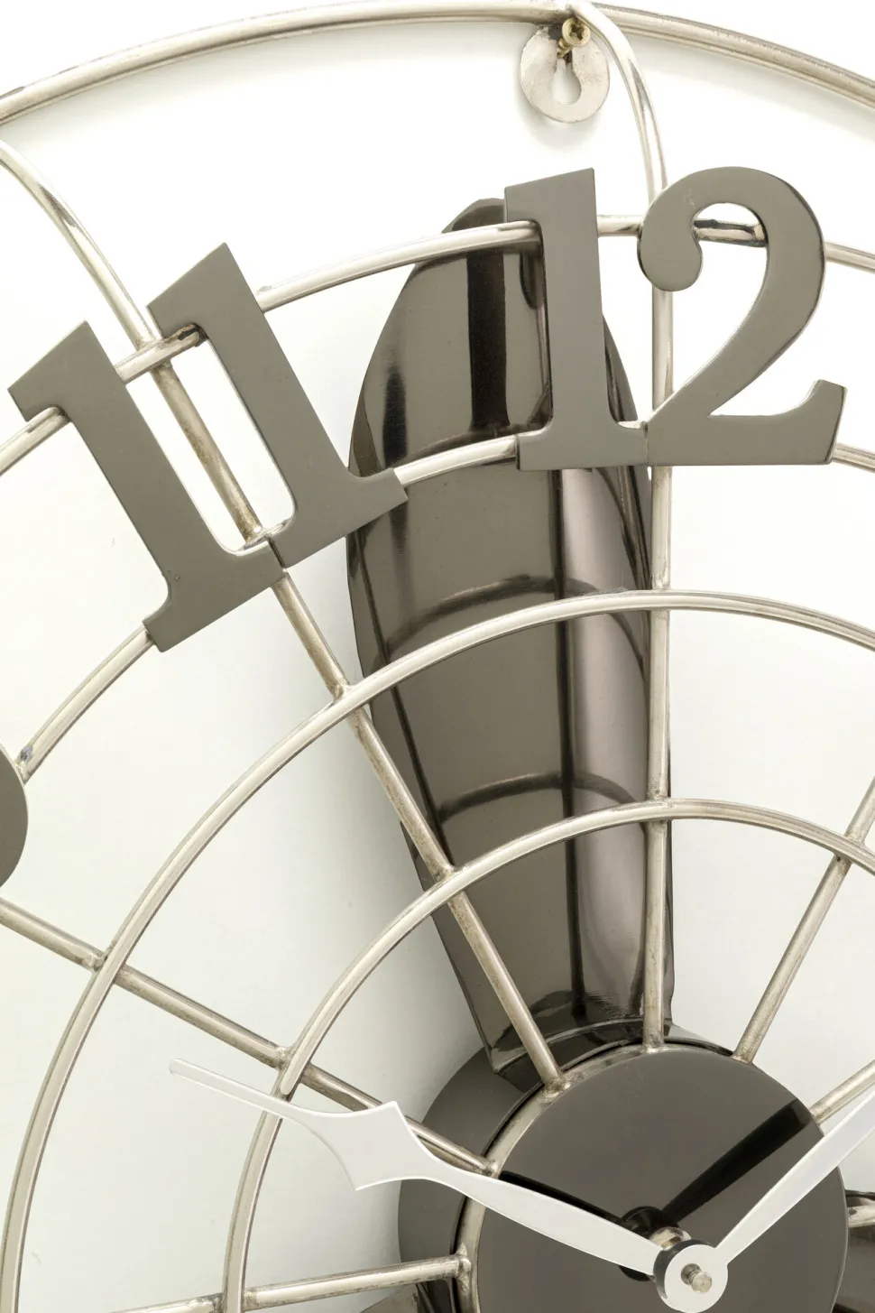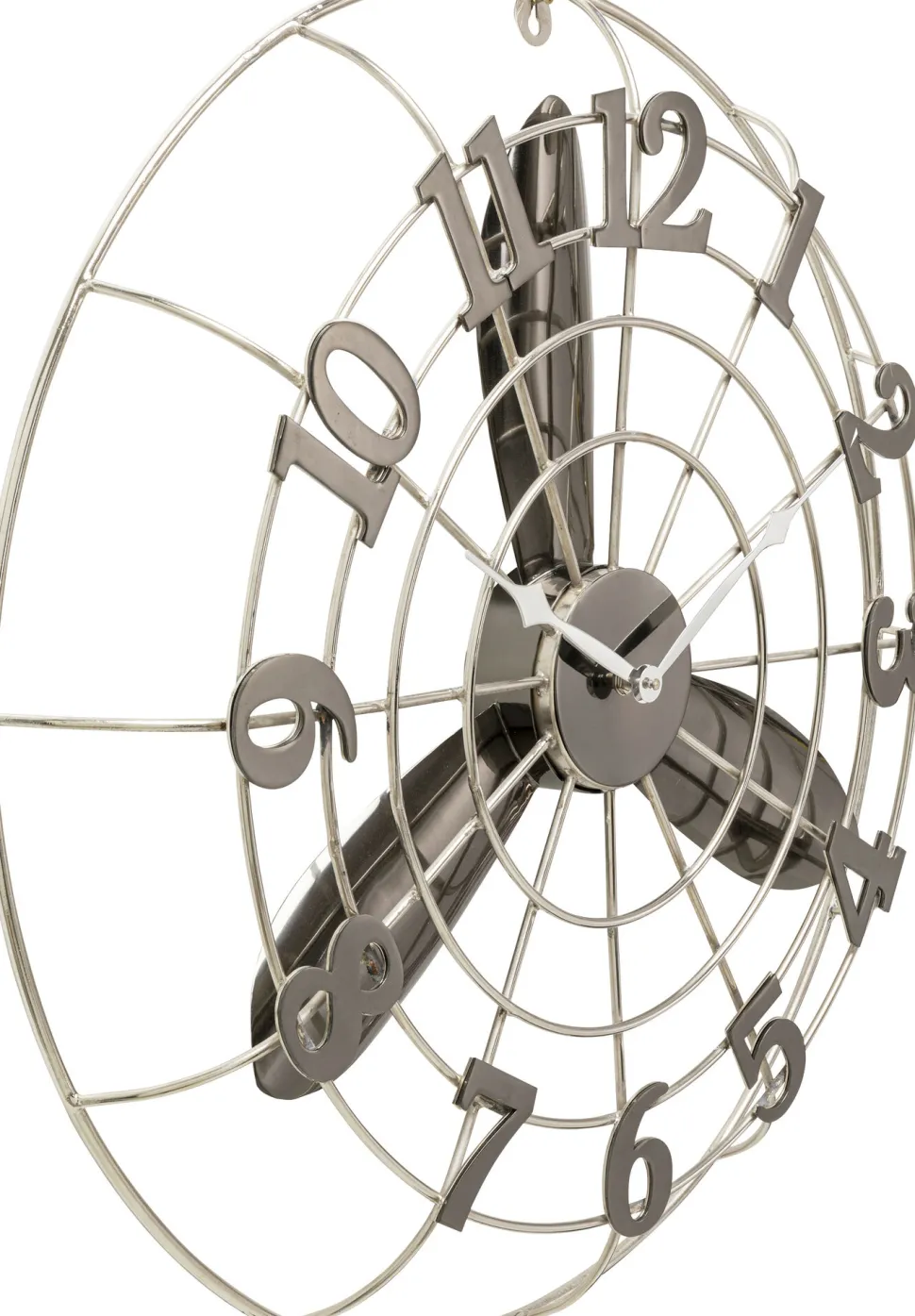 - Runde, große Wanduhr aus Metall in Silber
