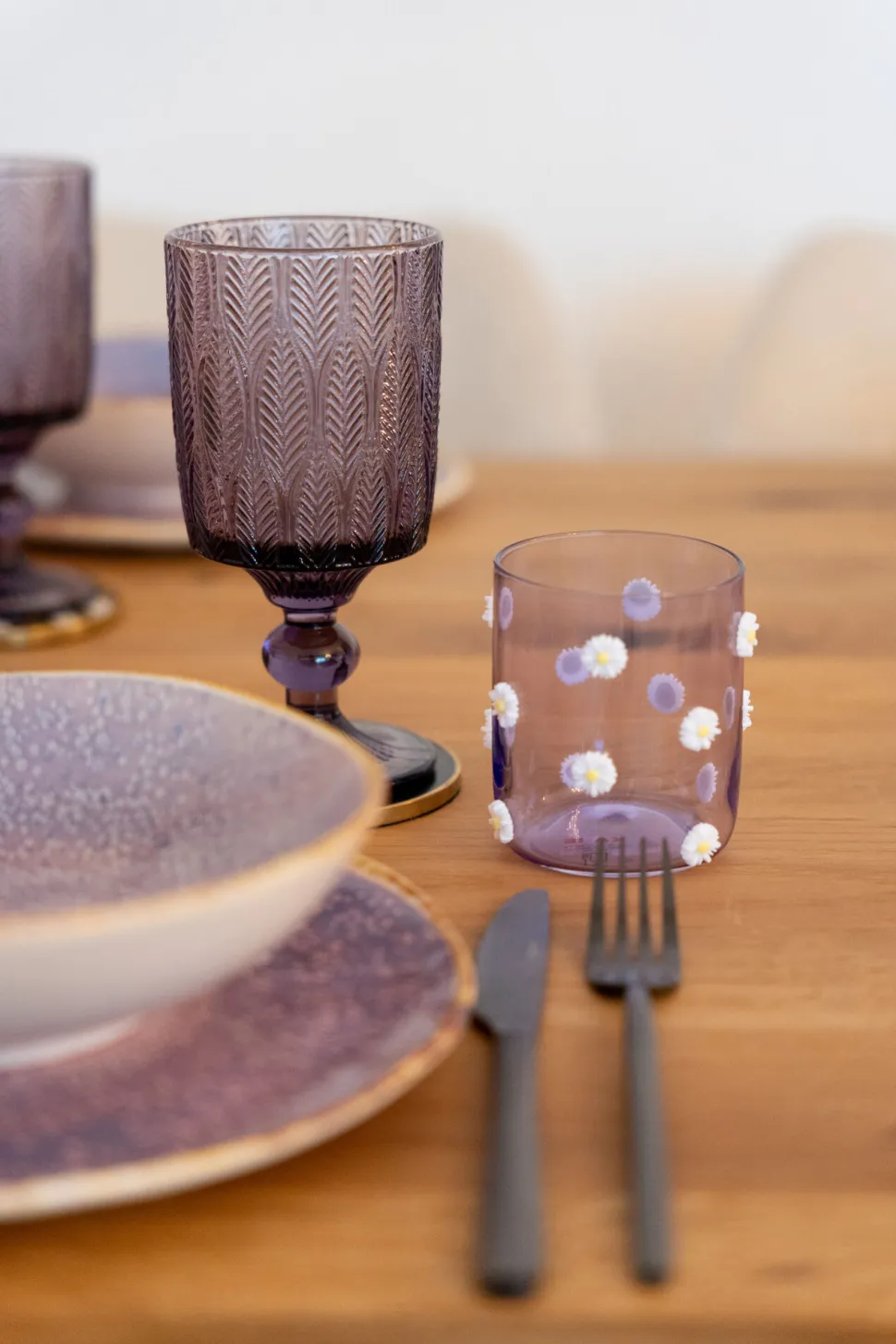 - Weinglas mit Blätter-Muster in Lila, 17 x 8.3 x 8.3 Zentimeter (H/B/T)