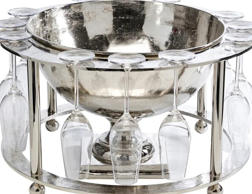 - Flaschenkühler Two-in-One: Rund um die voluminöse Eisschale zieht sich ein eleganter Ring, an dem 12 Gläser aufgehängt werden können