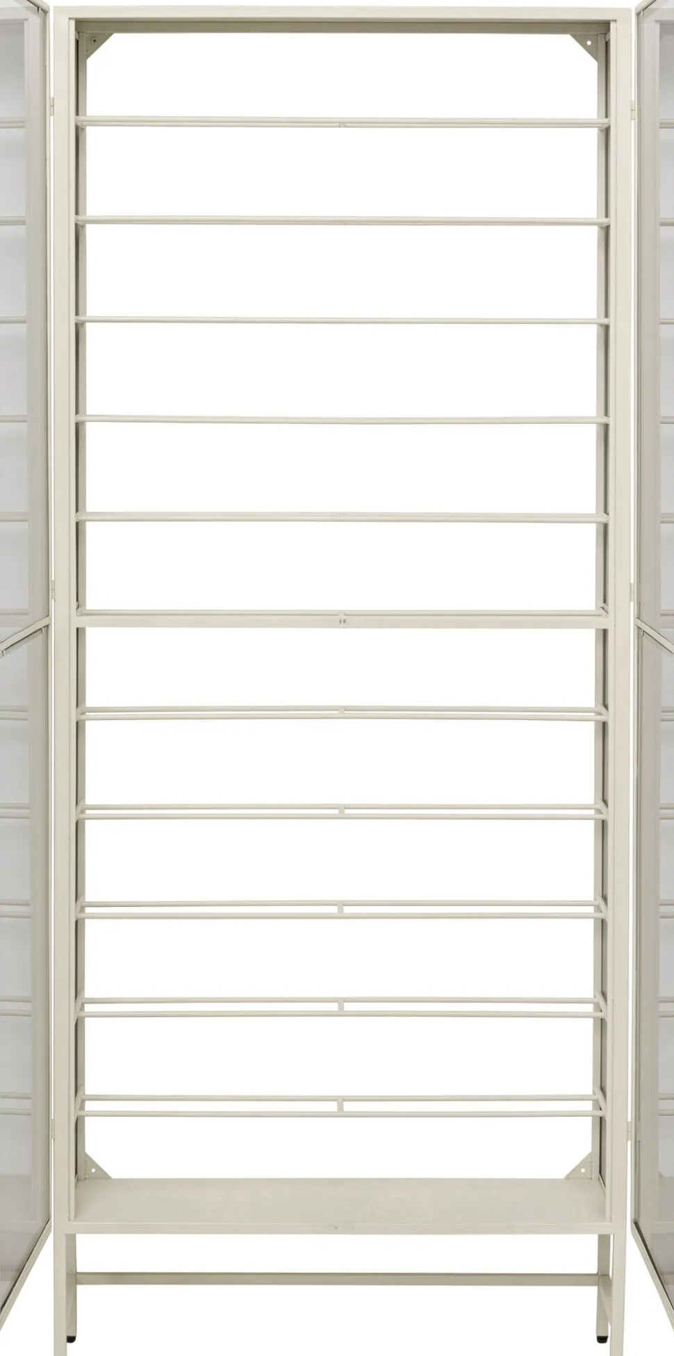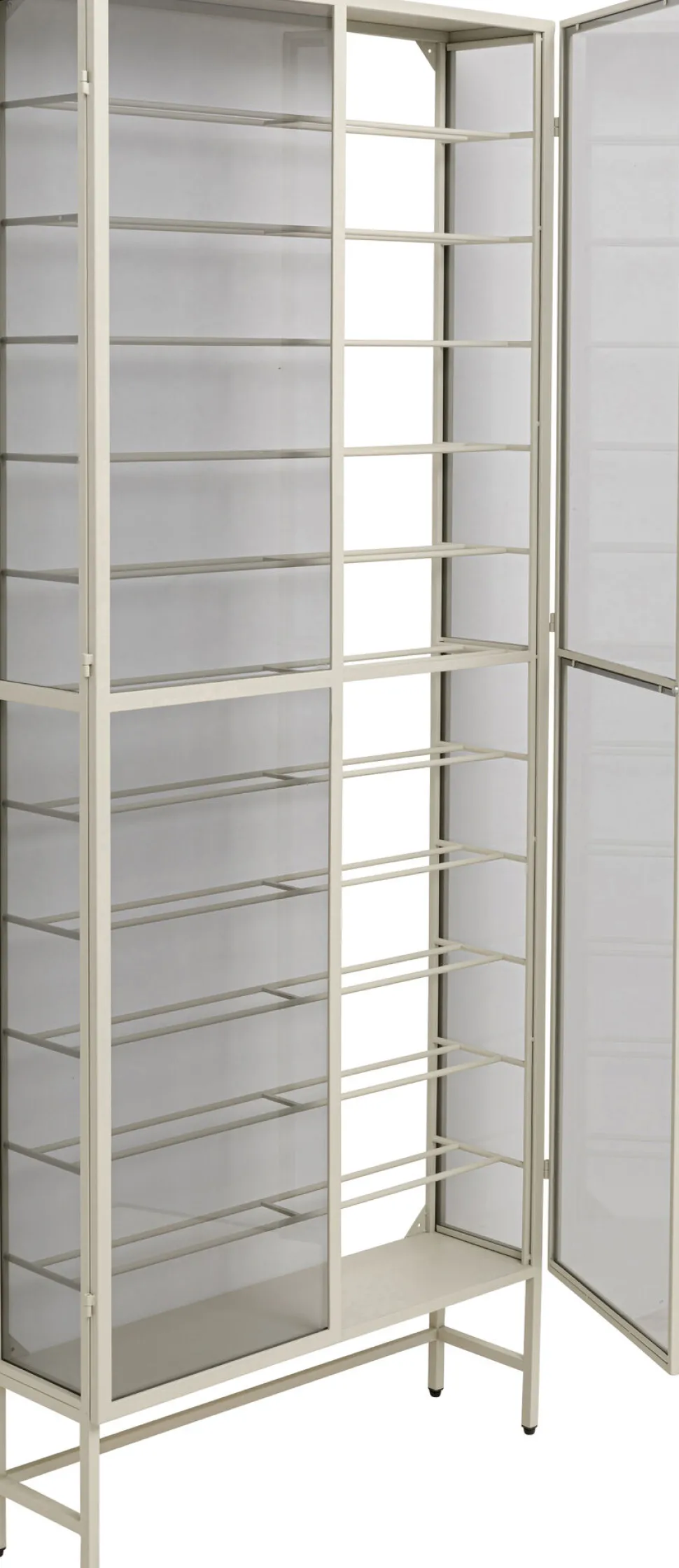 - Modernes Weinregal aus Stahl in Greige mit Glastüren, 180 x 75 x 20 Zentimeter (H/B/T)